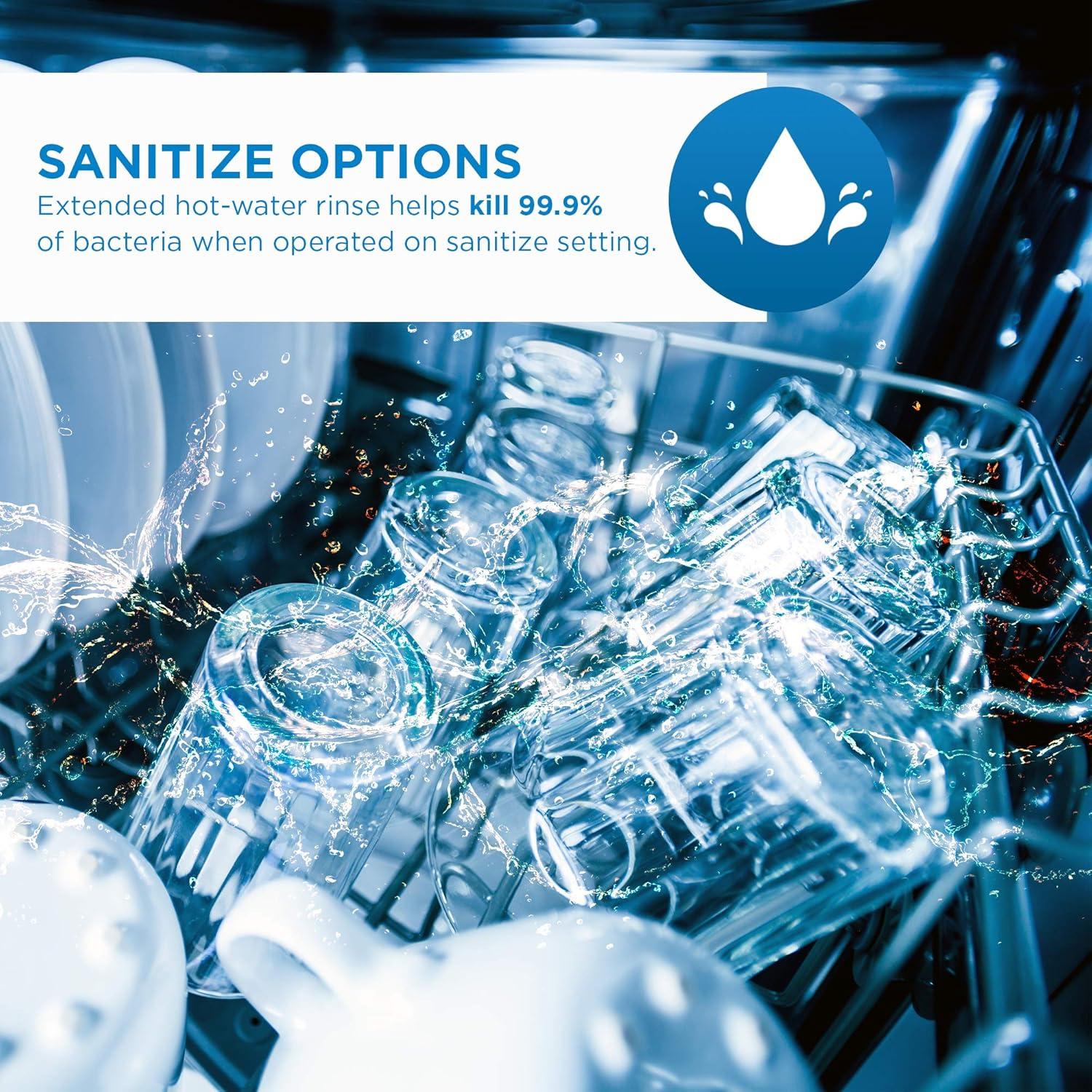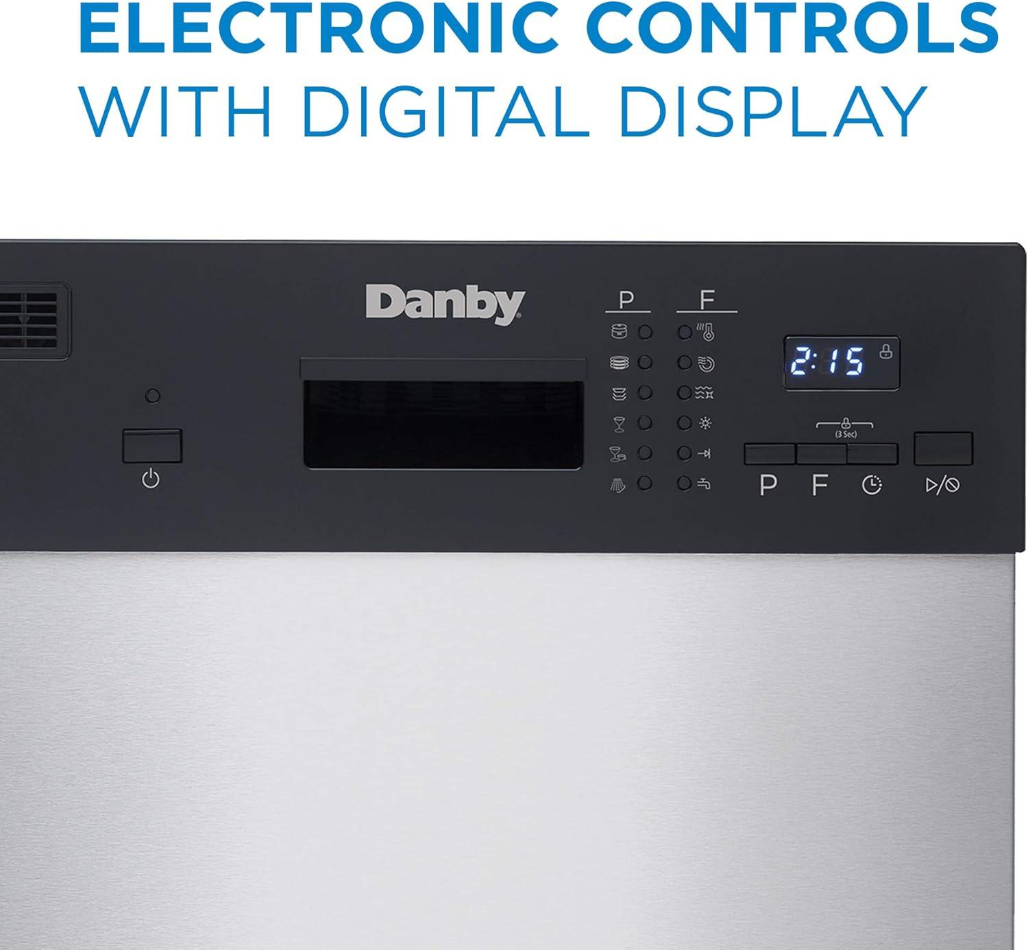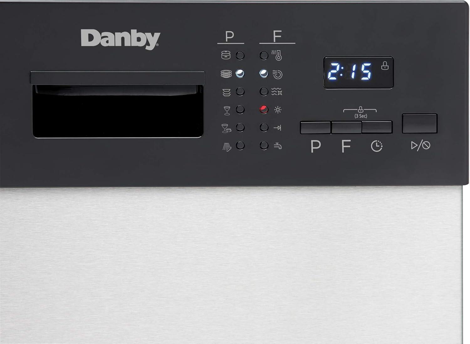Save time and money with Danby’s 18” ENERGY STAR compliant low-water consumption dishwasher. This built-in dishwasher holds up to 8 place settings and one silverware basket. It has 6 wash cycles to choose from: heavy, normal, eco, glass, rapid and rinse; 4 hot water temperature options plus sanitize mode (up to 69C/156F). Equipped with a stainless steel tub, this dishwasher can withstand years of washes. And at only 52db, less than the volume of a normal conversation, this dishwasher runs quietly in the background. The delay-start feature allows you to pre-select a desired start time so your dishes get washed on your schedule. And with smart wash, dirty dishes are automatically detected and a wash cycle similar to a short wash is performed. Take the pain out of washing dishes with the Danby 18”built-in low-water consumption dishwasher.