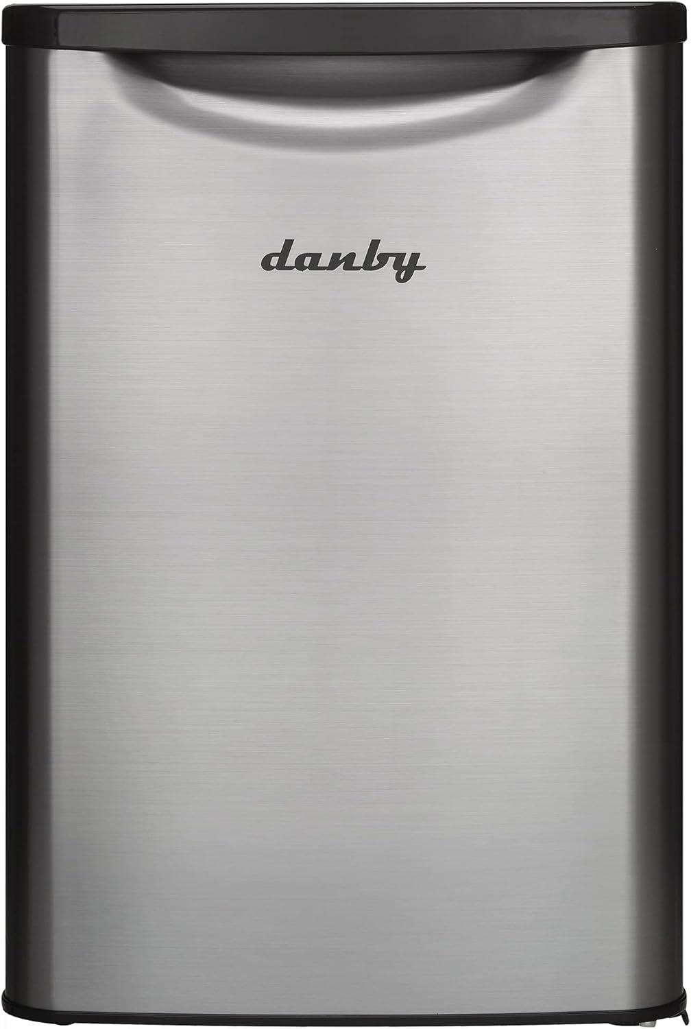 Drawing inspiration from mid-century styling and simplicity, Danby’s patented Contemporary Classic collection of compact refrigerators reimagine retro for the modern consumer. Featuring Danby’s exclusive retro-inspired curved door design, spotless steel door finish, rubber-grip ergonomic handle and stylized worktop, its exterior features are only outmatched by its signature interior. Boasting 2.6 cubic-feet (73 liters) of storage and cooling space, it features two and a half tempered glass shelves for maximum storage versatility. There’s more than enough room for larger bottles and the spacious unit helps keep electricity bills in check with its Energy Star rating and state-of-the-art mechanical thermostat. Maintenance and cleaning are as simple as can be with the automatic defrost system. It also includes an efficient CanStor beverage dispenser and reliable interior white LED light. This model is built for convenience as the reversible door hinge allows you to adjust it for either left or right-handed opening.