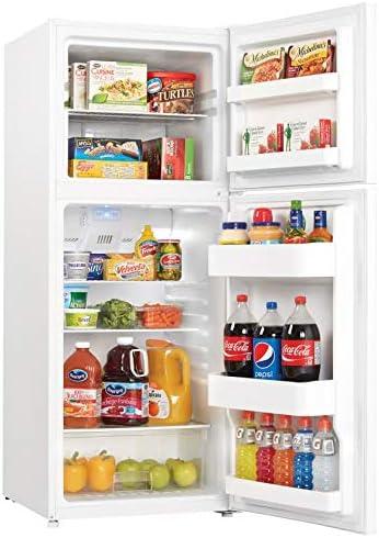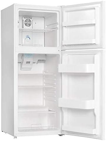 This apartment-sized refrigerator by Danby is second to none when it comes to performance and looks. This unit provides a generous 10 cubic feet (281 liters) of refrigeration space as well as a classy design that can fit in with any existing décor. The DFF100C1BSLDB features a convenient frost free-operation system. The appliance comes with three removable and adjustable glass shelves as well as a removable and adjustable wire shelf in the freezer compartment. It also provides a sizable vegetable crisper along with a glass cover. The unit can easily be programmed by its electronic controls with blue indication display and the handy reversible door hinge allows for both left and right-hand opening. If you prefer your drinks ice cold there’s an ice cube tray included and the bright white interior LED light makes it easy to see inside of the refrigerator compartment. This popular model also offers a 12-month warranty on parts and labor along with in-home service.