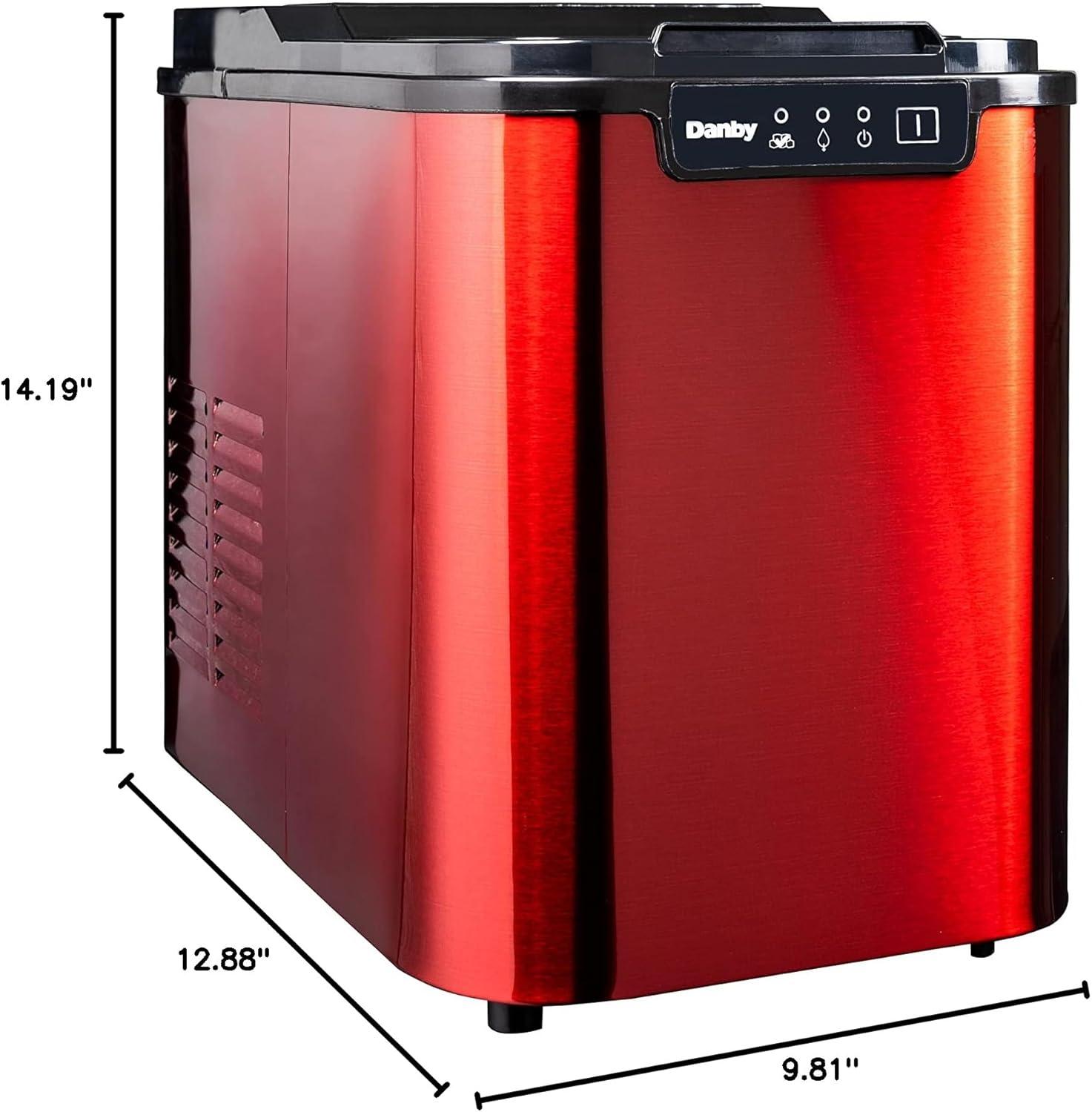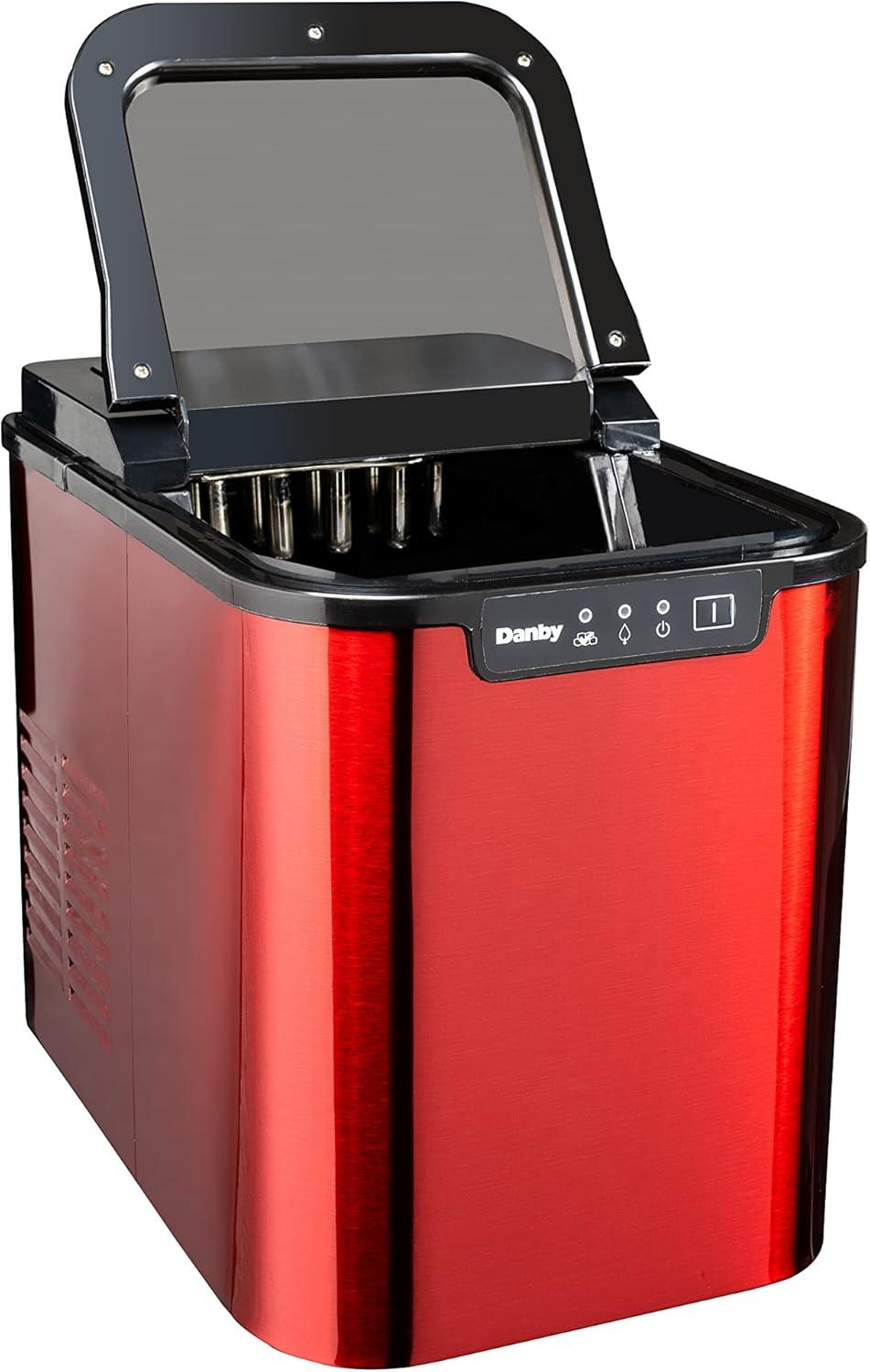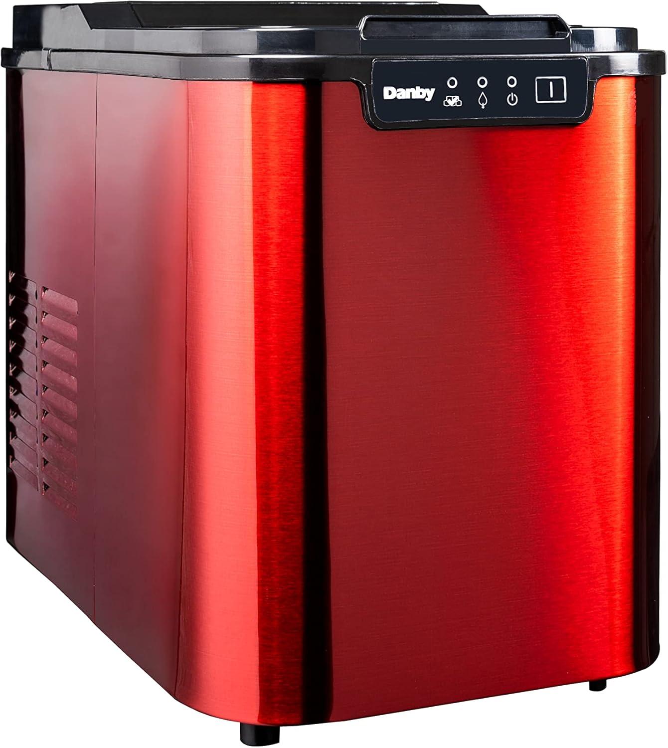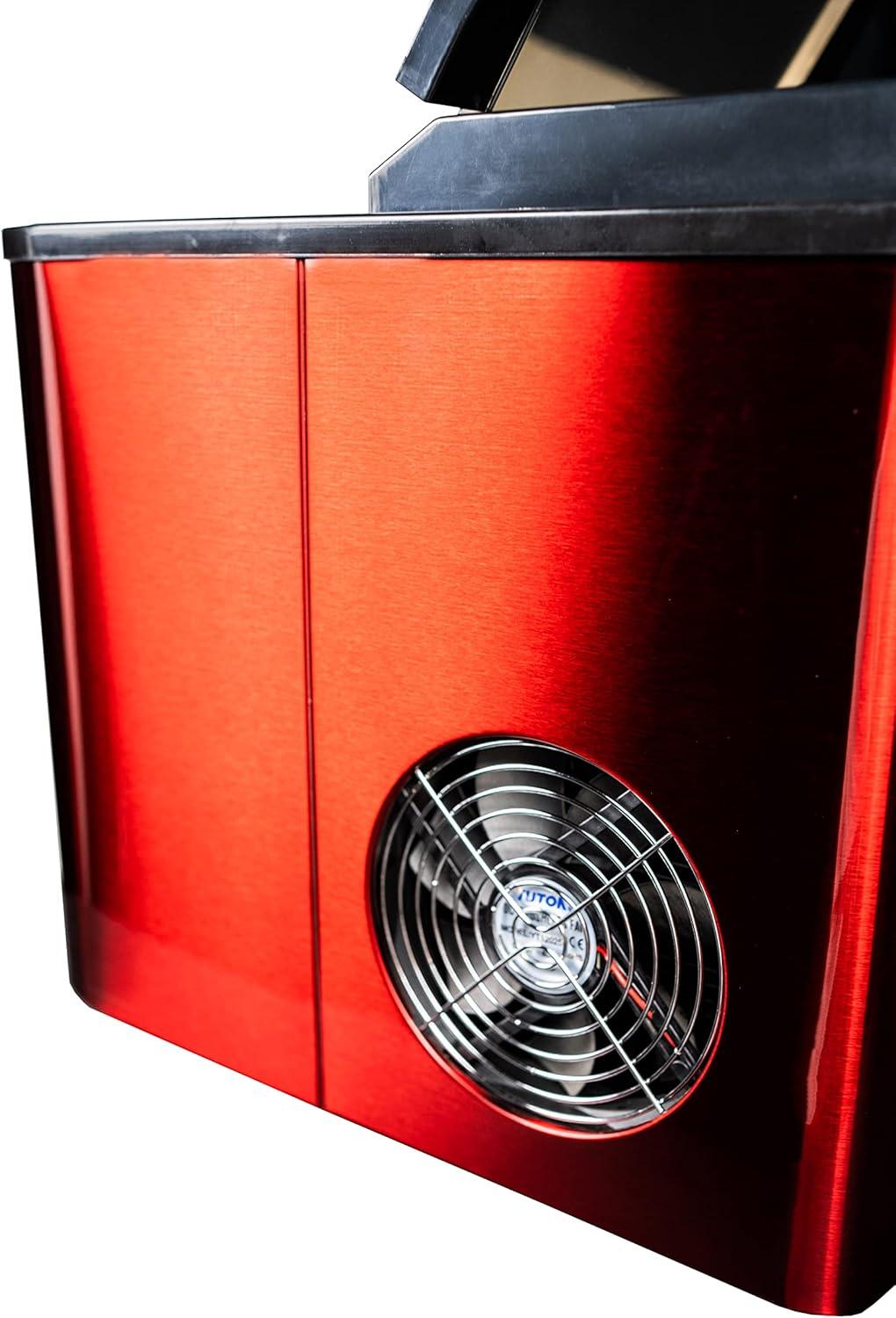 Keep your cold drinks as refreshing as can be with this attractive and modern ice making unit. This model fits in effortlessly with your room’s existing décor. It features a see-through window, with a candy apple red stainless exterior and black lid. The R134A refrigerant makes it environmentally friendly, and it can produce as much as 25 lbs (12 kg) of ice each day in three ice cube sizes. Plus, the unit can store up to 2 lbs (1 kg) of ice at any time. This chic model comes with a white ice scoop and the electronic LED controls make it easy to program. You’ll never have to guess when the ice container is full, because it has a state-of-the-art alarm system to notify you. Further, there’s no need to fuss over the ice maker as it’s equipped with a self-cleaning function. The appliance also features a 12-month warranty on parts and labor.