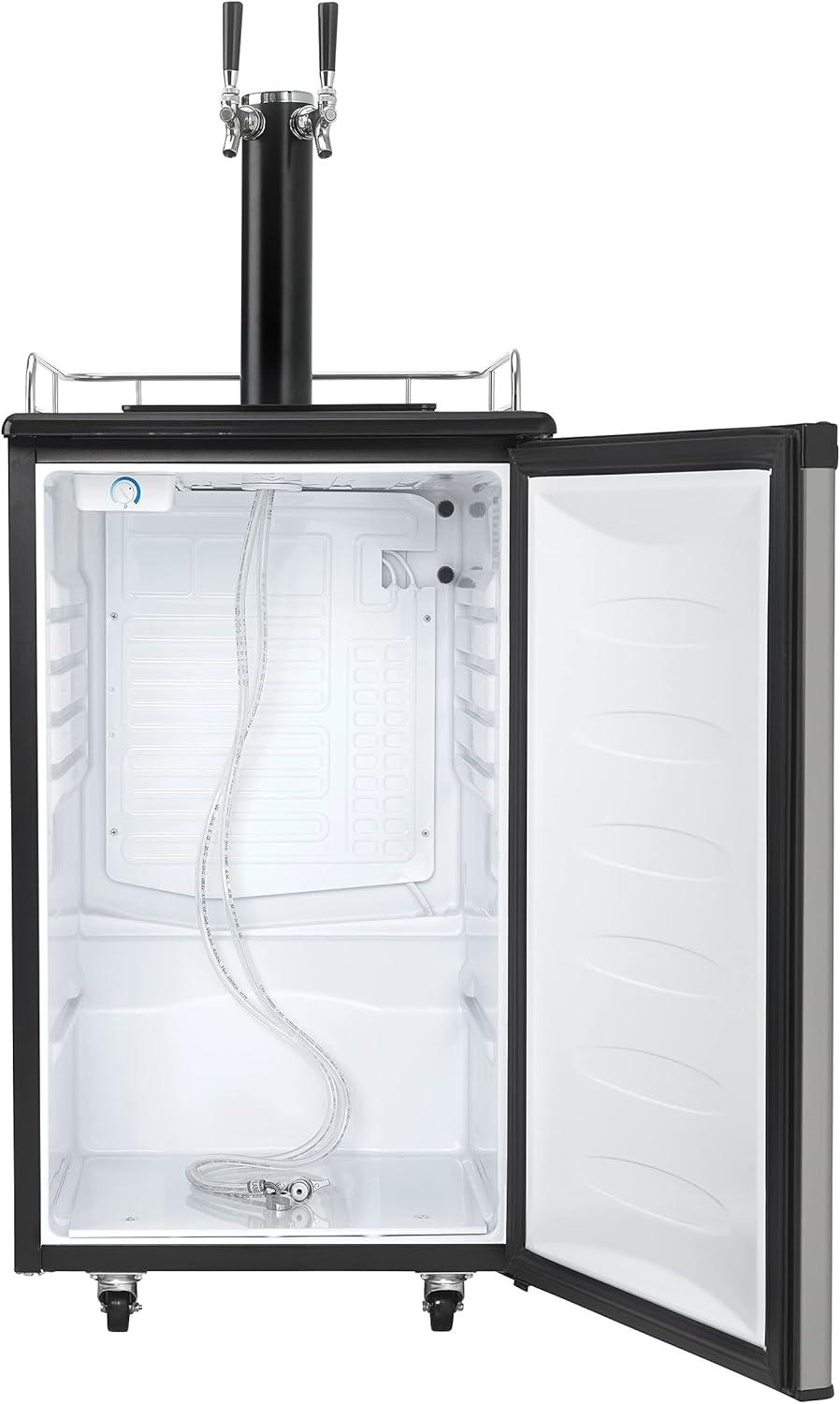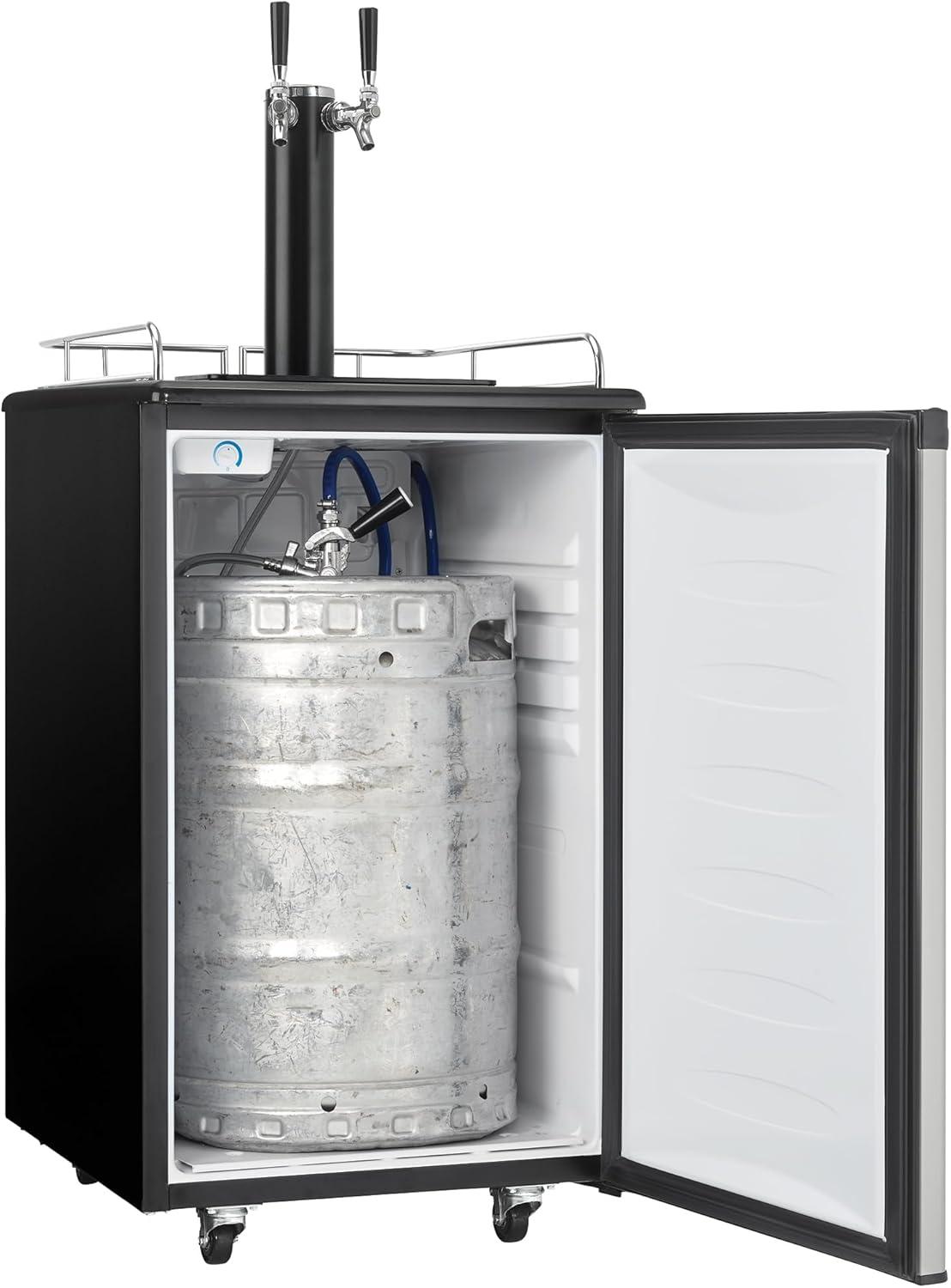 Danby DKC054A1BSL2DB 5.4 Cu.Ft. Double Tap Kegerator, Auto Defrost and Mechanical Thermostat, Keg Cooler with Scratch-Resistant Worktop and Reversible Door Hinge, Steel(Single-Tap)